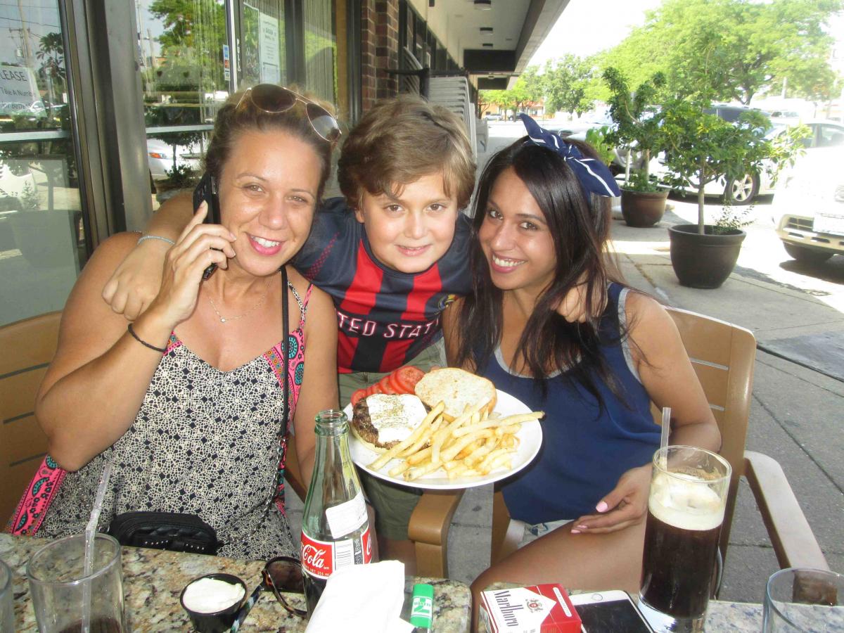 Enjoying lunch on the patio at Papagalino Cafe & Pastry in Niles