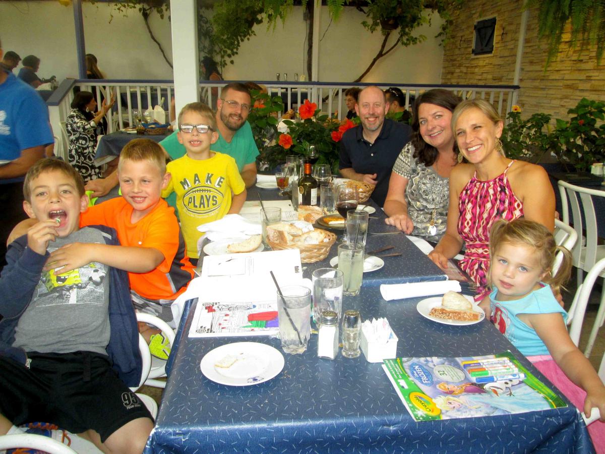 Family enjoying dinner at Mykonos Greek Restaurant in Niles
