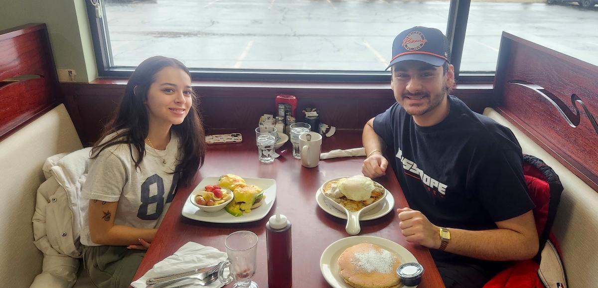 Couple enjoying lunch at Tasty Waffle Restaurant in Romeoville