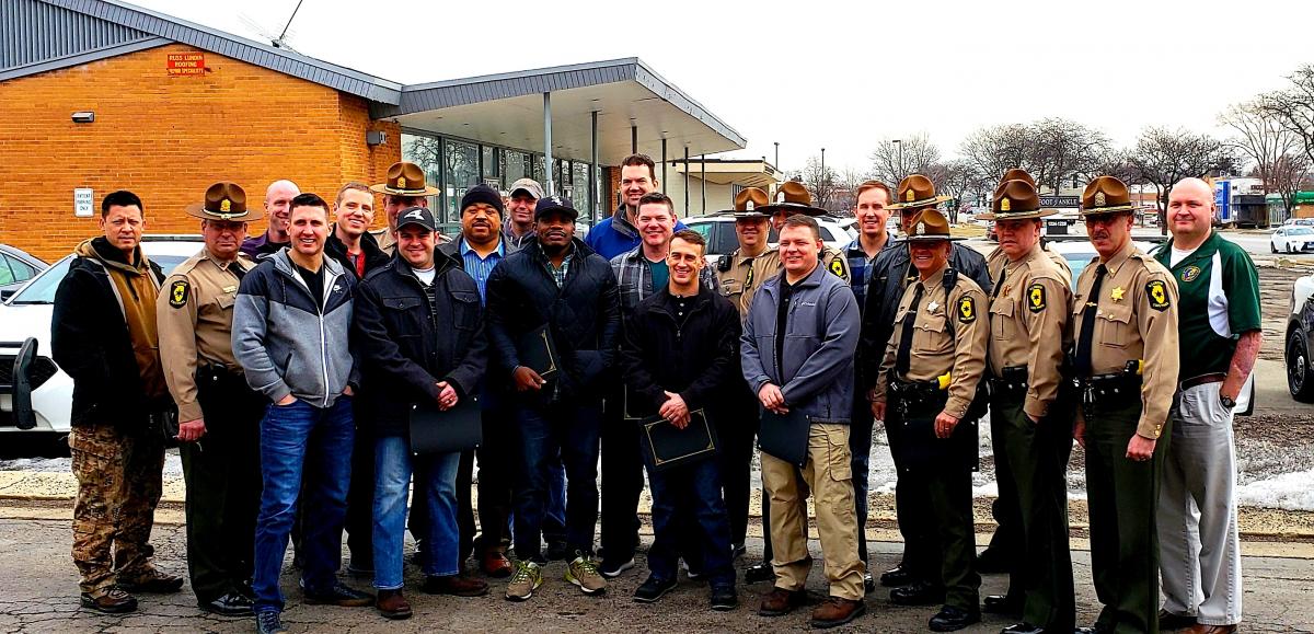 Police officers enjoying lunch at Omega Restaurant in Downers Grove