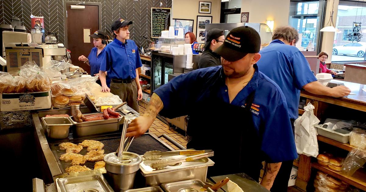 Hard working kitchen crew at Charcoal Delights Restaurant in Chicago