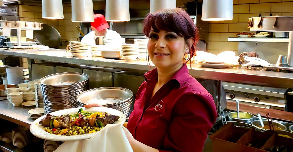 Friendly server at Plateia Mediterranean Kitchen & Bar in Glenview