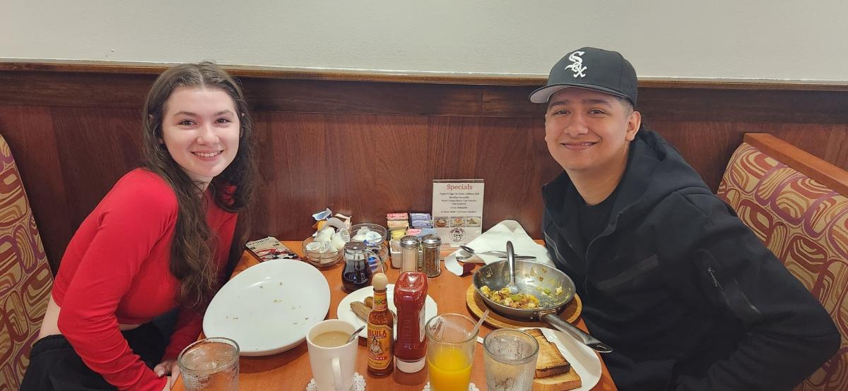 Couple enjoying breakfast at Eggs Inc. Cafe in Naperville