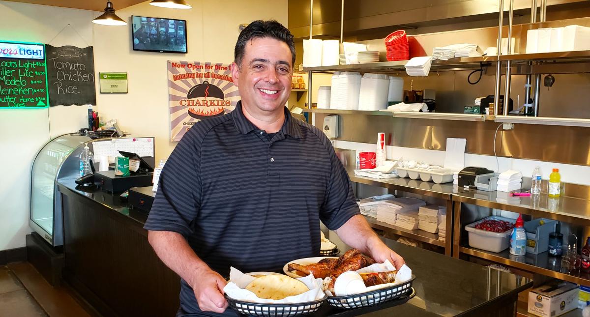 Customer enjoying lunch at Charkie's Restaurant in Carol Stream