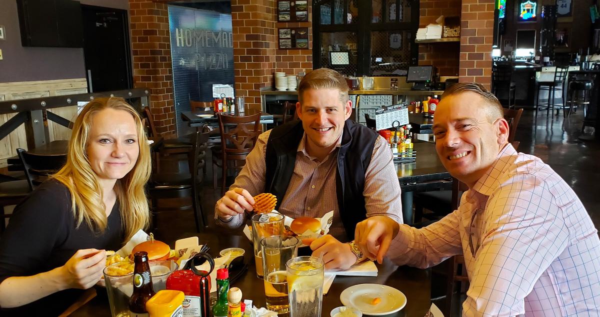 Friends enjoying early dinner at Draft Picks Sports Bar in Naperville