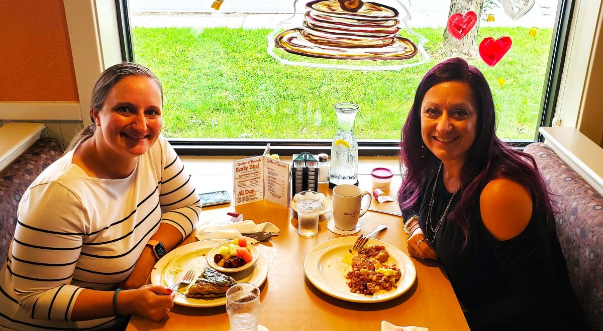 Friends enjoying breakfast at Golden Brunch Restaurant in Arlington Heights