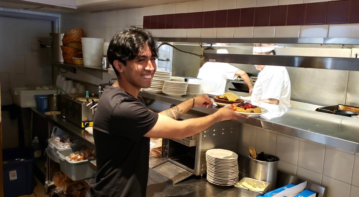 Friendly server at George's Family Restaurant in Oak Park
