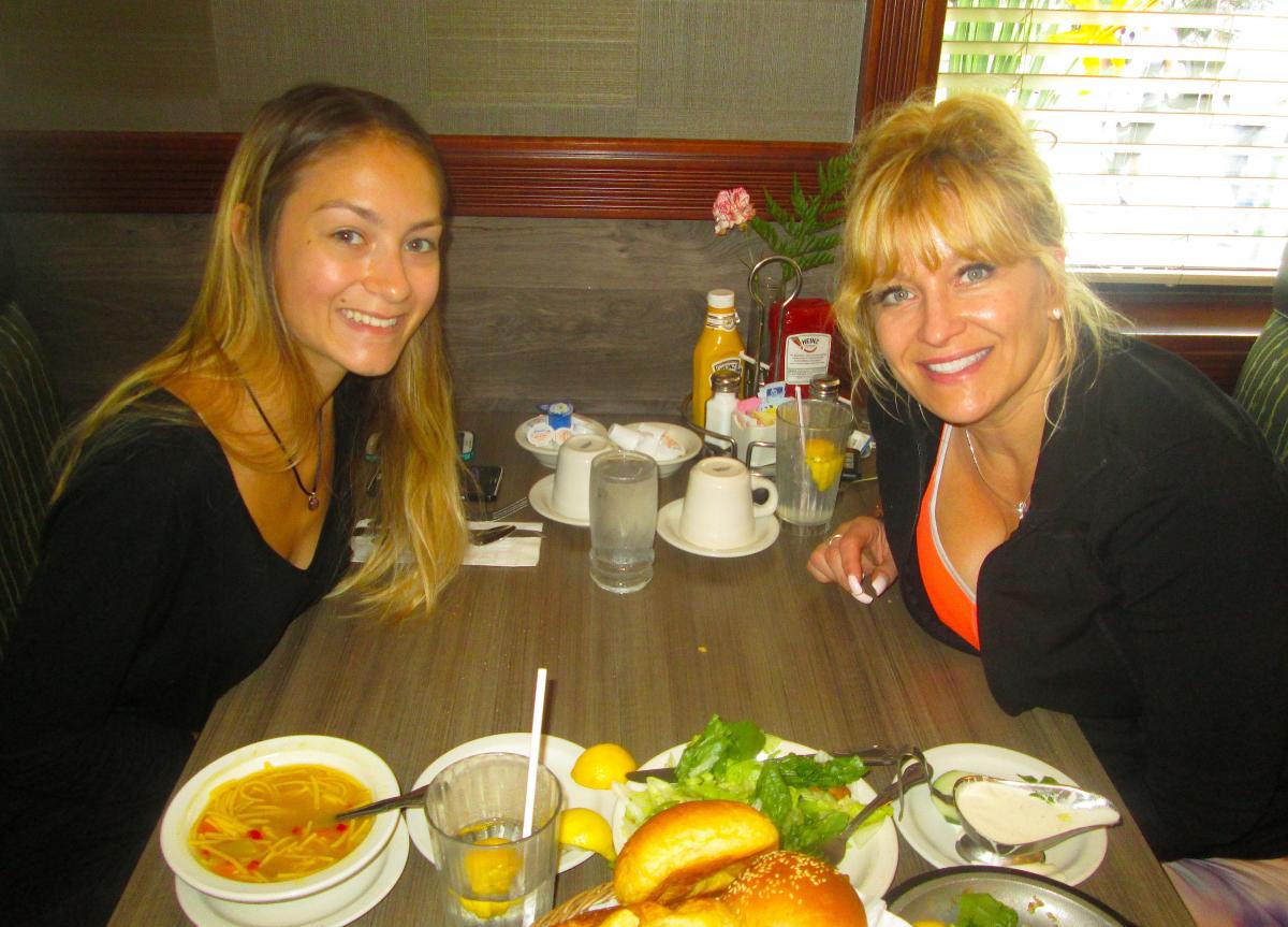 Sisters enjoying dinner at Rose Garden Cafe in Elk Grove Village