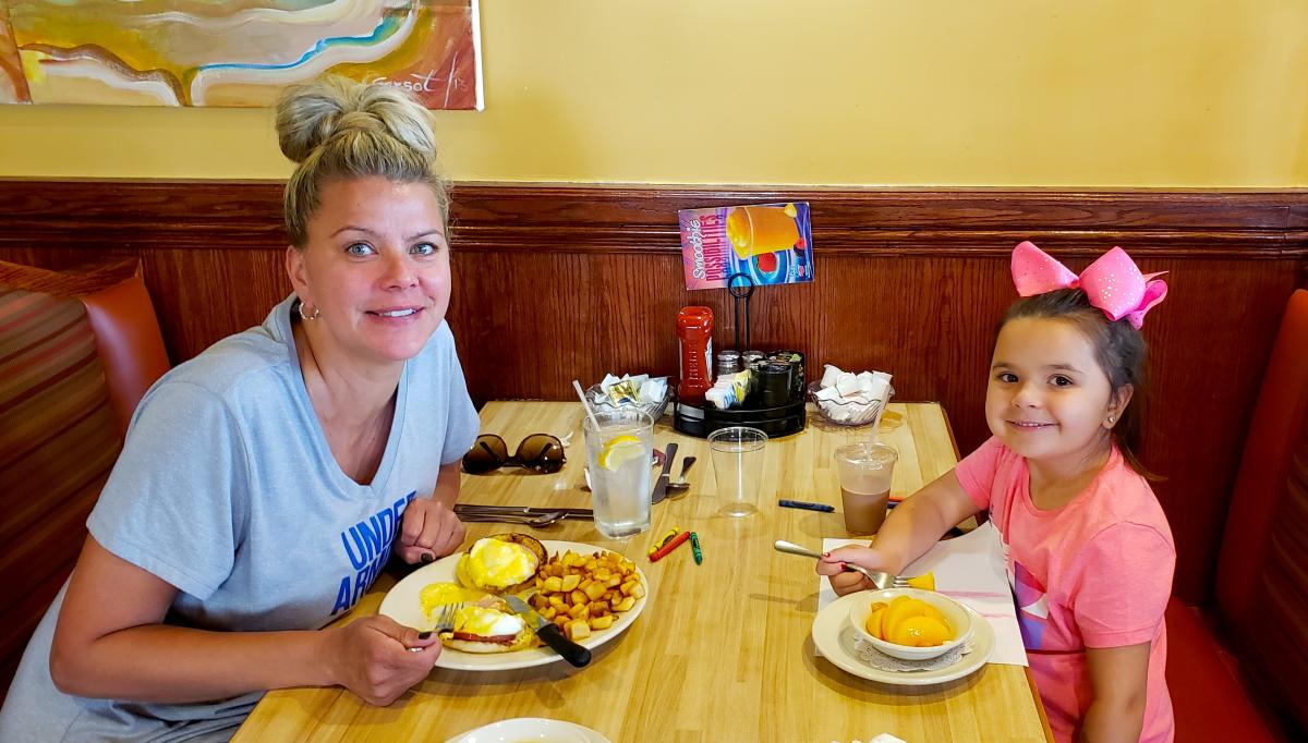 Enjoying breakfast at Downers Delight Pancake House & Restaurant in Downers Grove