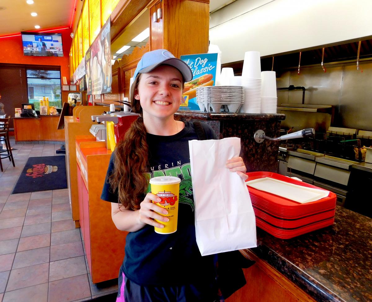 Happy carryout customer at Brandy's Gyros in Chicago