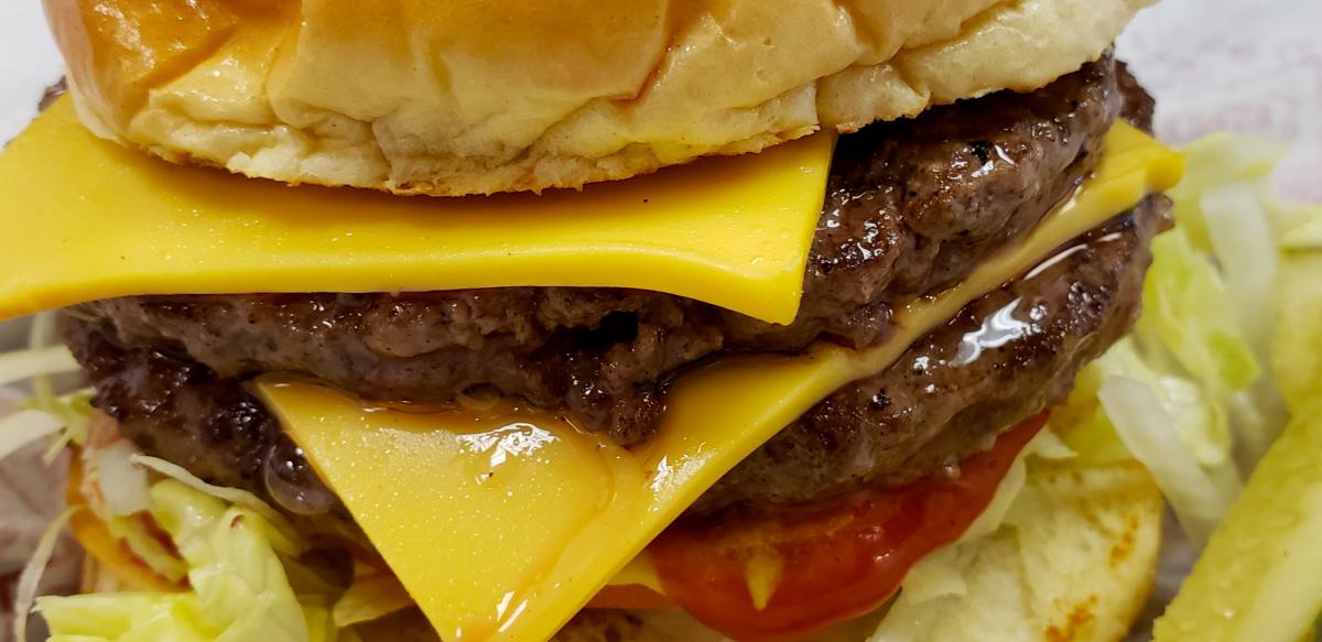The famous double cheeseburger at Burger Baron Restaurant Arlington Heights
