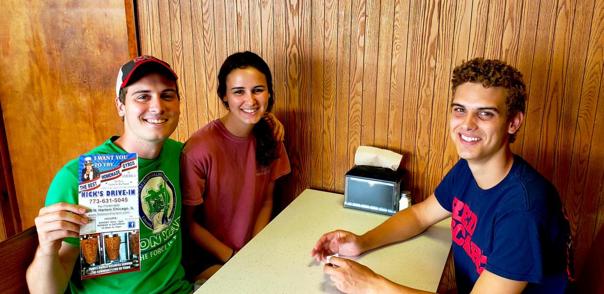 Friends enjoying lunch at Nick's Drive-In Restaurant in Chicago