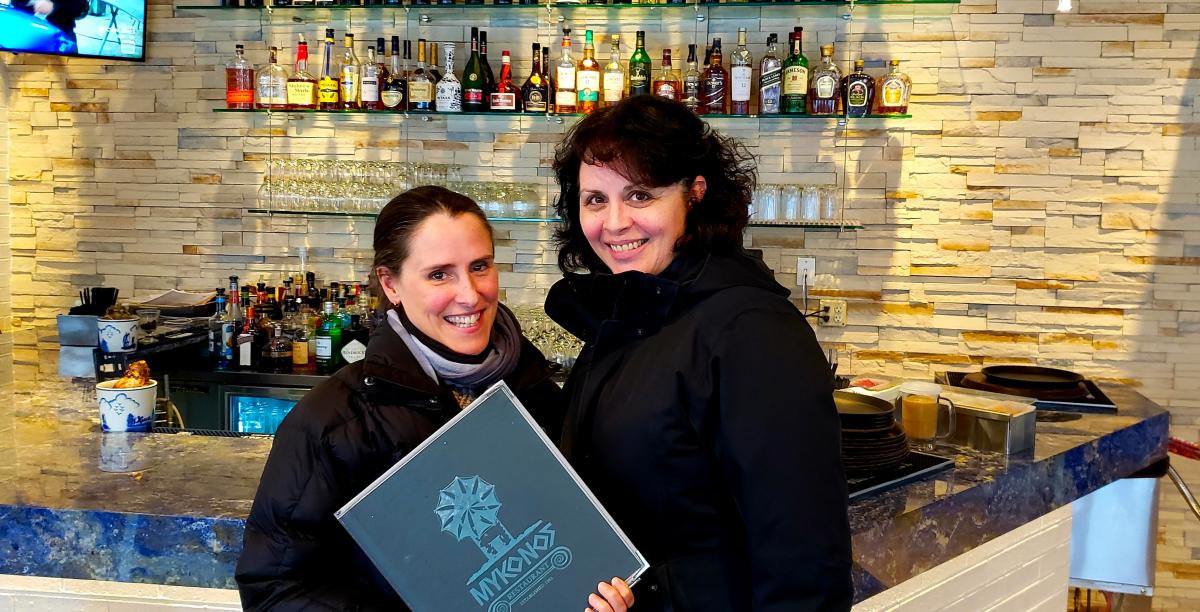 Friends enjoying lunch at Mykonos Greek Restaurant in Niles
