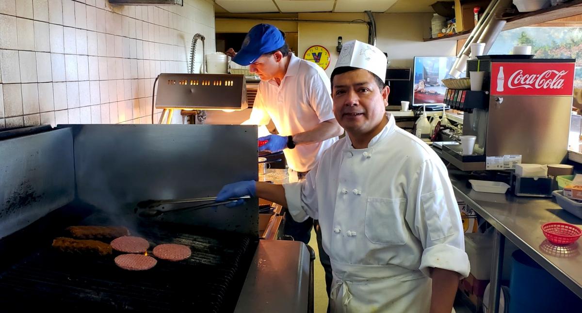 Hard working kitchen crew at Nick's Drive-In Restaurant Chicago