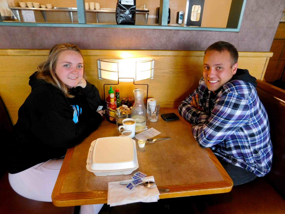 Couple enjoying breakfast at Omega Restaurant & Pancake House in Downers Grove
