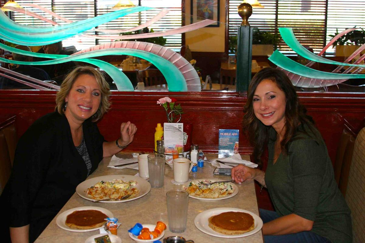 Mom & daughter enjoying breakfast at Omega Restaurant & Pancake House in Downers Grove