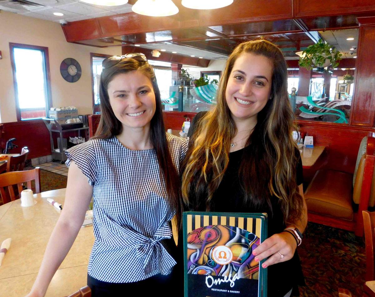 Friends enjoying breakfast at Omega Restaurant & Pancake House in Downers Grove