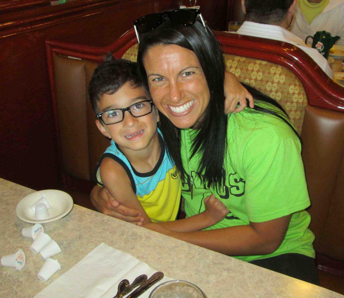 Mom and son enjoying breakfast at Omega Restaurant & Pancake House in Downers Grove