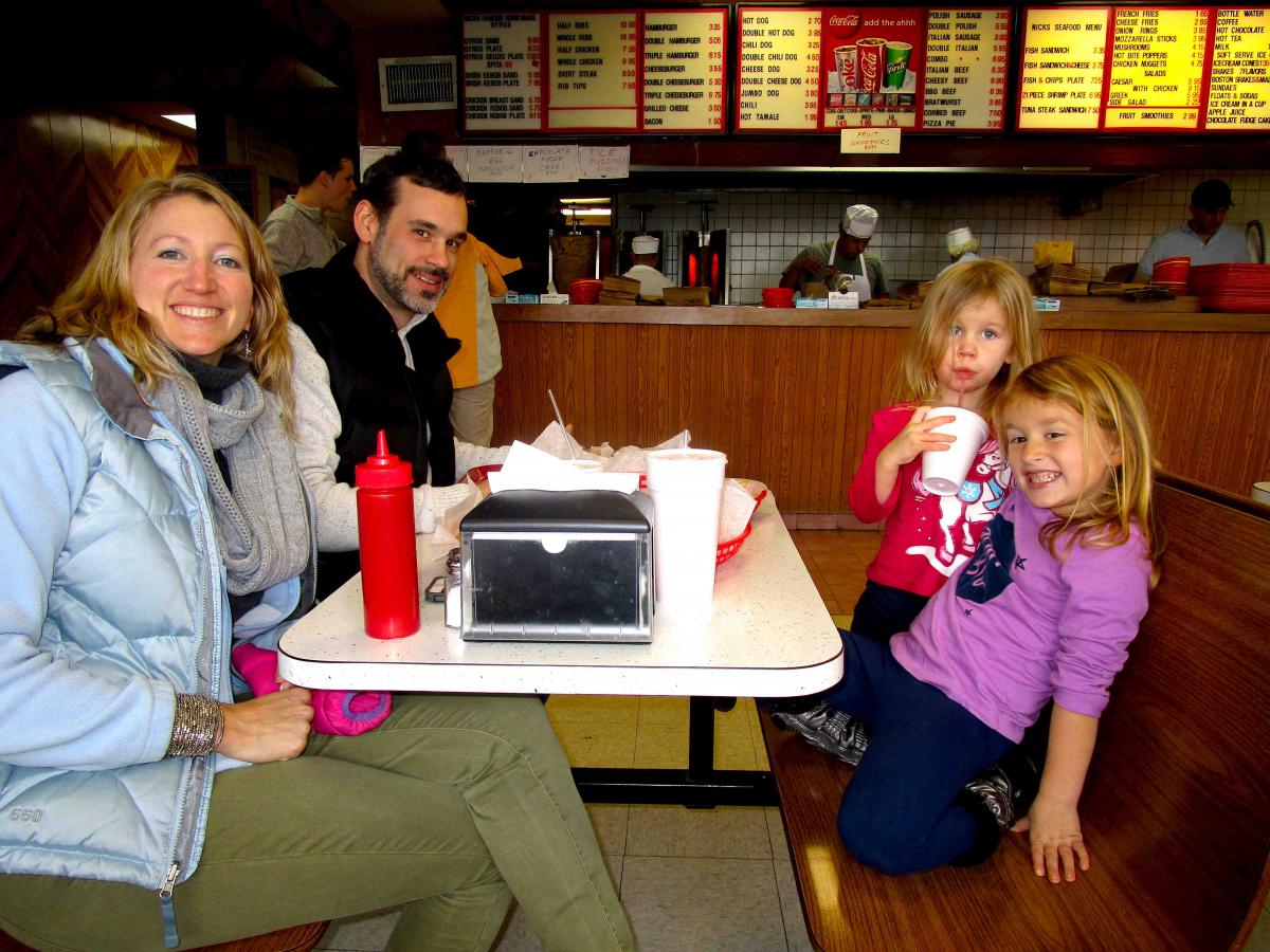 Family enjoying lunch at Nick's Drive In Restaurant in Chicago